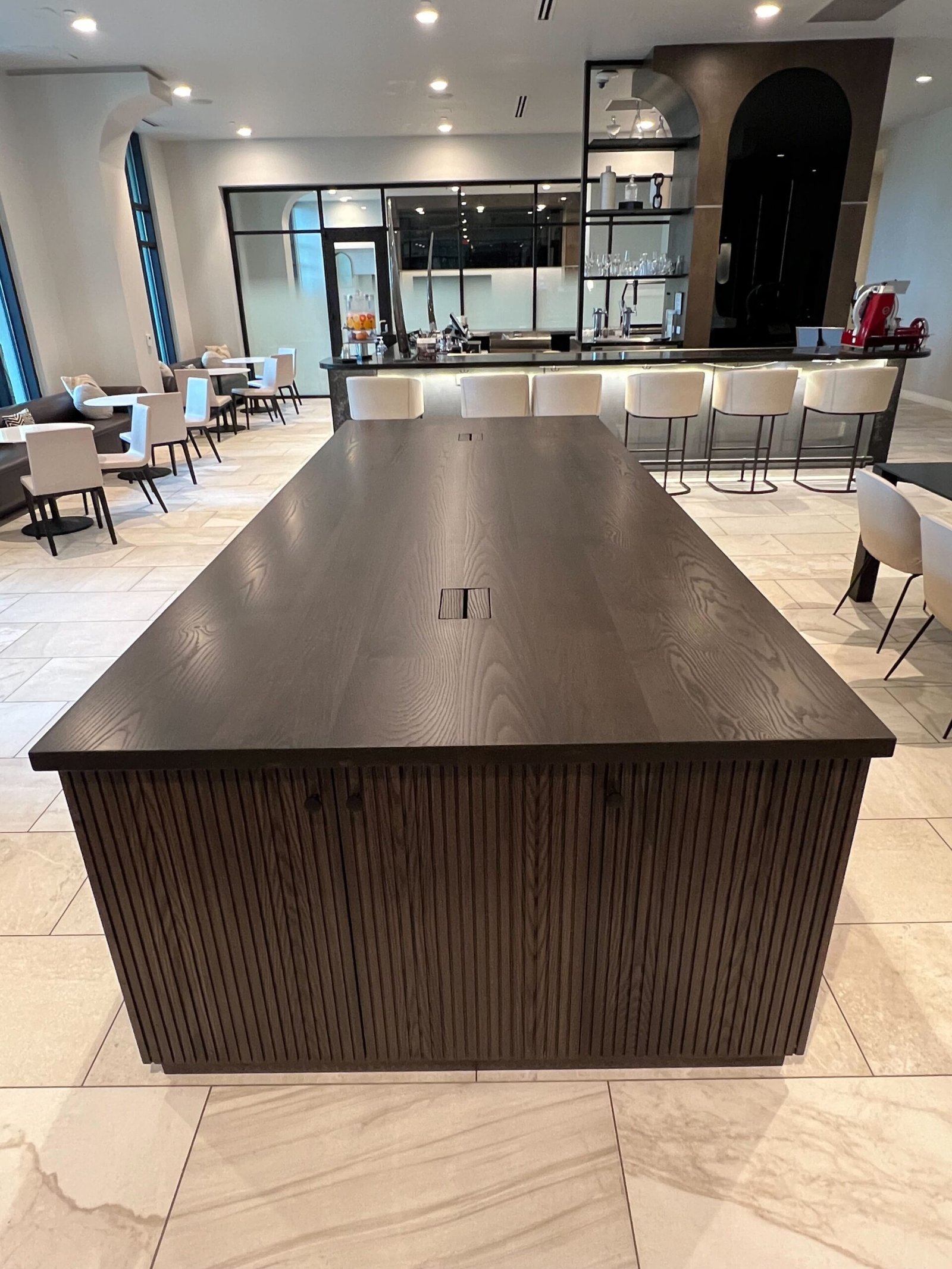 For Southern Tide’s Charleston headquarters, we crafted custom conference tables that bring warmth and refinement to their coastal-inspired workspace.