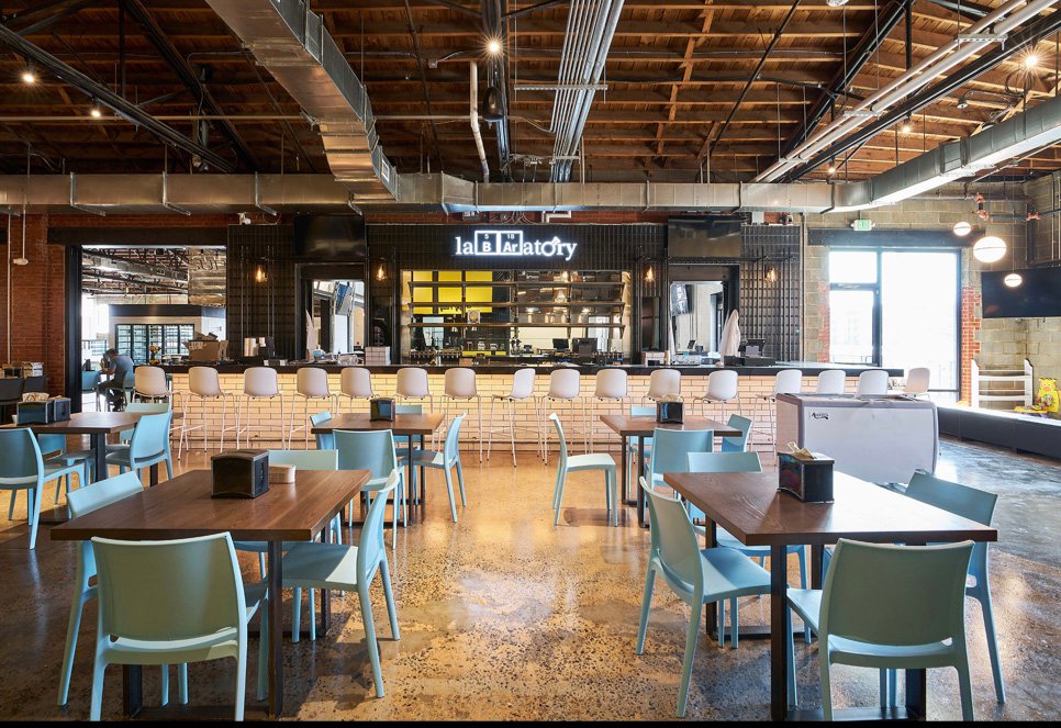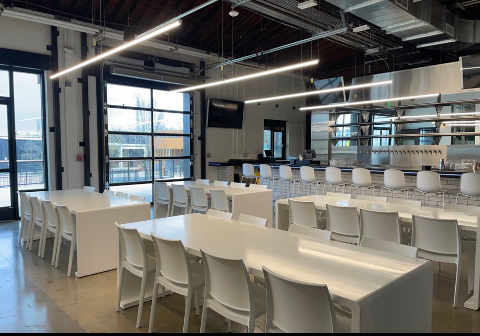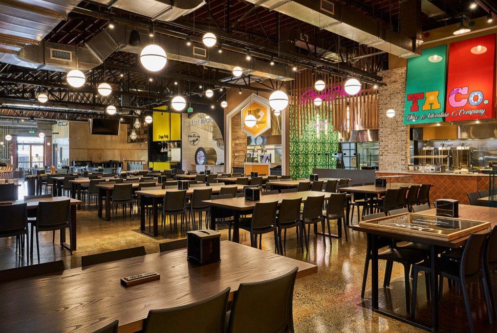 A retail restaurant food court we built a collection of custom tables that balance utility and design in a high-traffic, high-energy environment.