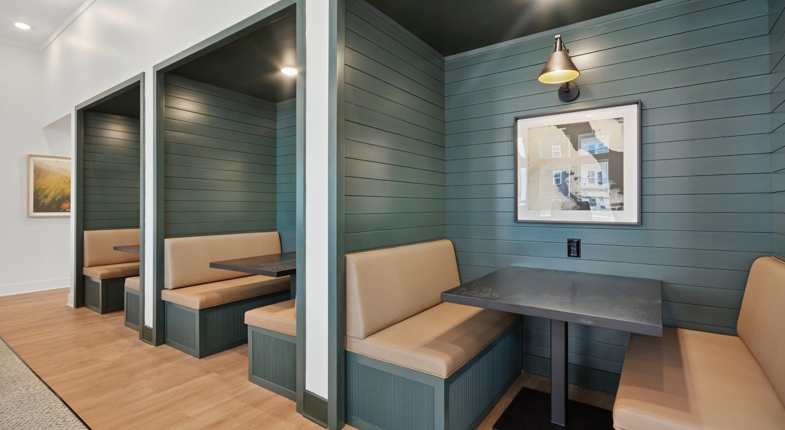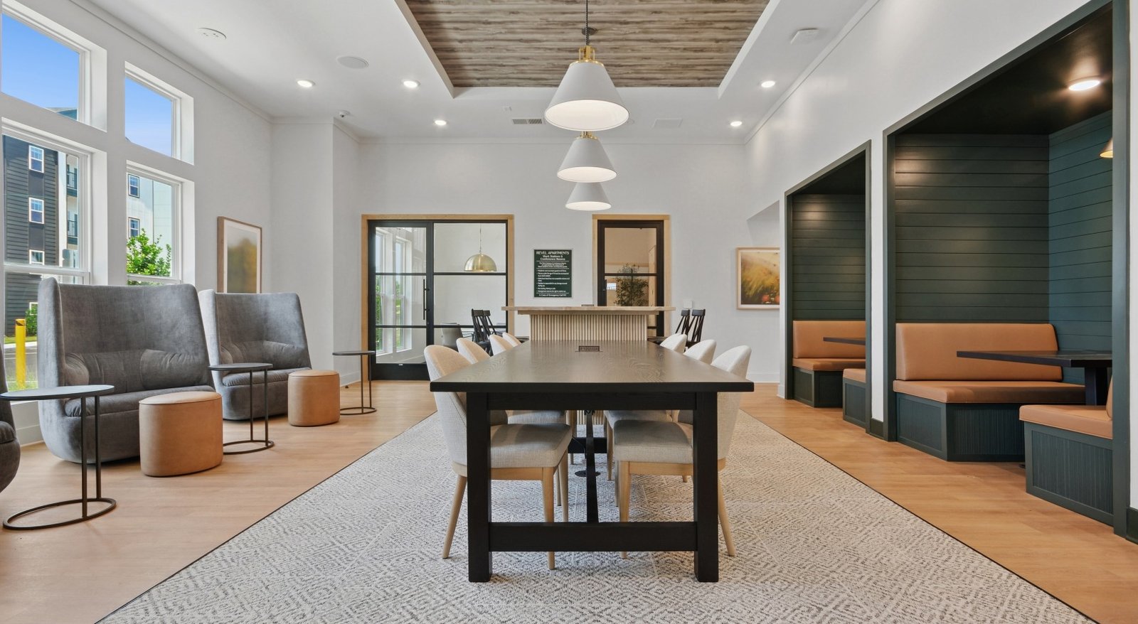 Custom-built furnishings designed to support multifamily living, enhancing shared spaces through durability, comfort, and cohesive design.